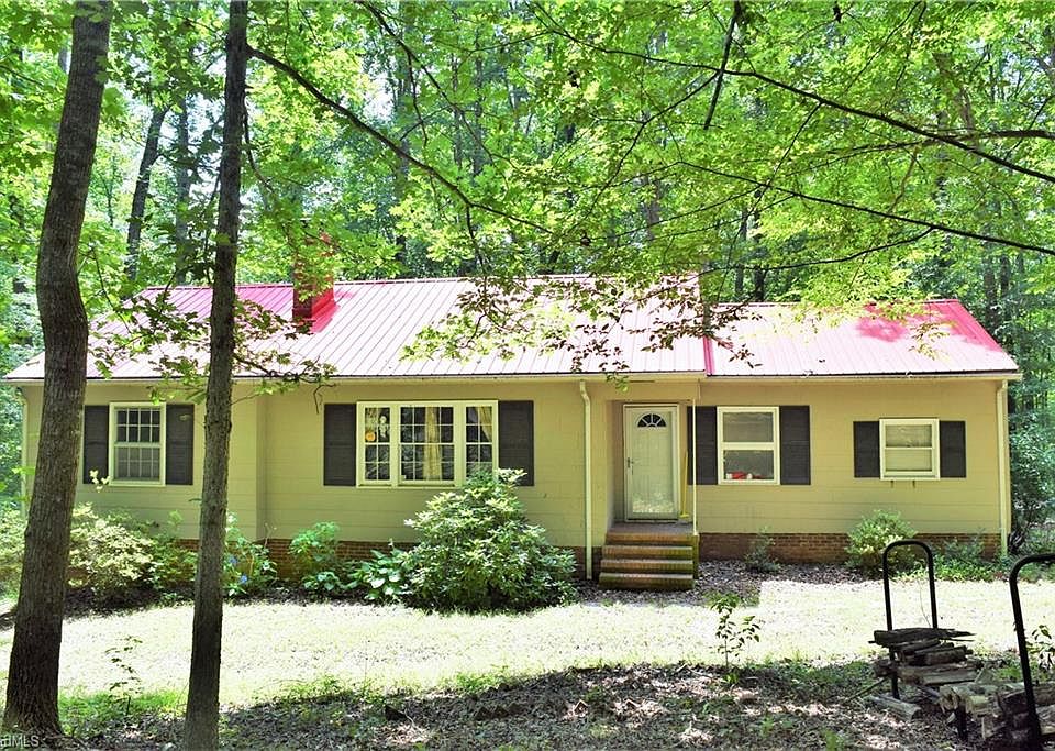 Truly a very unique property! Totally secluded retreat nestled on 8.20 acres. Accessed by tree-lined,private driveway. Mostly hardwood trees and abundant wildlife. Large stream meandering along property. Spacious bedrooms. Large living room with wood stove and built-in shelves. Hardwood floors. Full unfinished basement. 16 x 12 deck. 20 x 16 wood siding shed. Newer Metal Roof! Located less than 1 mile to Carolina Marina on Belews Lake. Located in between Greensboro, Winston Salem or VA. Agent Only!