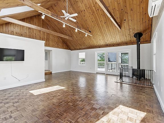 - Features: Skylight, Cathedral Ceiling(s), Ceiling Fan(s), Flooring - Wood, Deck - Exterior, Exterior Access, Slider, Gas Stove, Lighting - Overhead