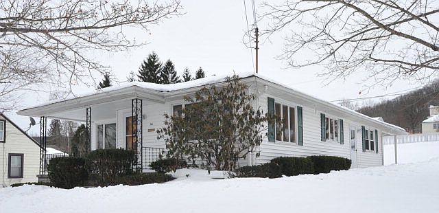 Looking for move-in-ready 1 floor living, close to all that Corning has to offer? You've found it in this well-maintained ranch on the southside hill! With a beautiful view, the welcoming porch leads to well-sized living areas and hardwoods throughout much of the main floor. Comfortable living with newer H/E heat, central A/C, many newer windows, a newer full bath and more! 3 bedrooms and a large, eat-in kitchen round out the main floor. The lower level has some finished area as well! Sitting on a beautiful, huge corner lot, this home is convenient to downtown Corning, i86 and Finger Lakes!