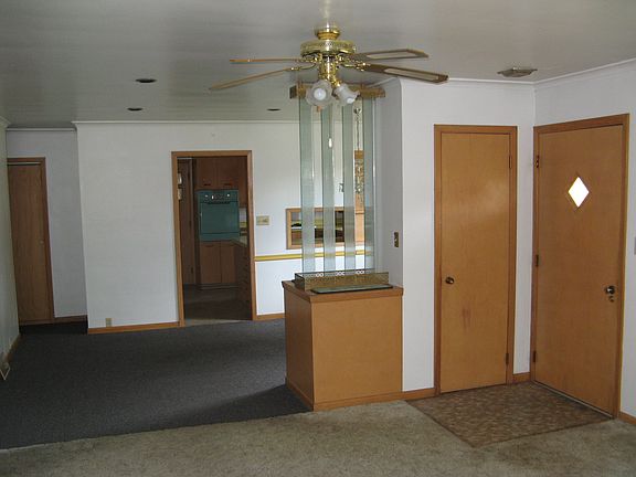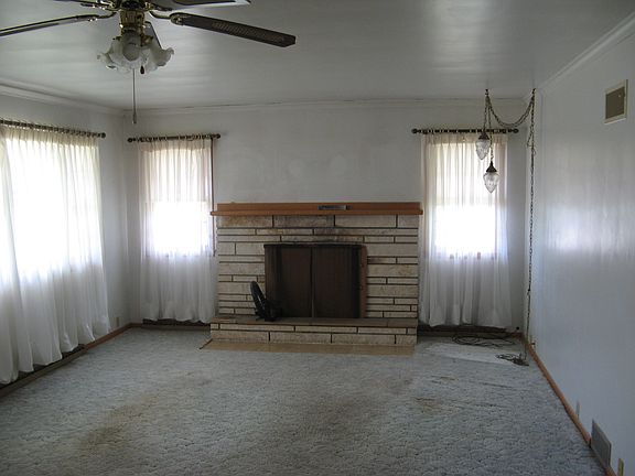 This attractive ranch home is located close to downtown on a corner lot, has a large yard and 3 bedrooms & 2 baths. Attached garage, fireplace and unfinished basement. Large, front living room with wood-burning fireplace, dining room that contains a pass-through to kitchen. Kitchen has ample cabinetry, serving counter and currently has laundry hook-up on north wall. 3 bedrooms, one with on-suite bath & cedar closet. Additional main bath & plenty of storage.Easy access to downtown, fireplace and attached garage. Large side yard is located with alley and adds to extra area for expansion or for gardening. Exterior consists of stone and hard-board painted siding, asphalt shingles. This could be a great find for 1 level living!