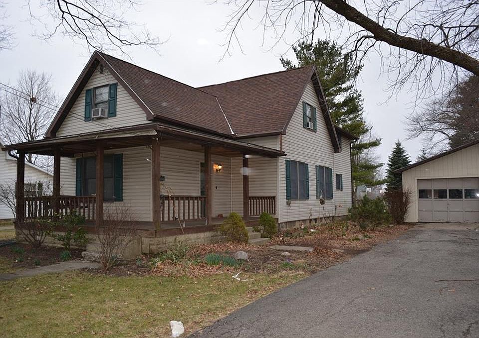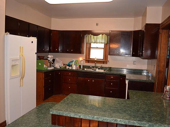 Come see this home and all it has to offer! Bigger than it looks! Inviting wrap around front porch with swing, Living room with fireplace insert, wood floors and natural woodwork. Spacious Dining room opens to Eating bar and kitchen. First floor Bathroom, Family room has wood floors and steps away from the back door and laundry Room. Fenced in yard backs up to the Village park! Upstairs features 3 Bedrooms, 1 Bath and a large landing that could be used as a bedroom or an additional family room. Two city lots beings .45 acre lot. Sold AS-IS.