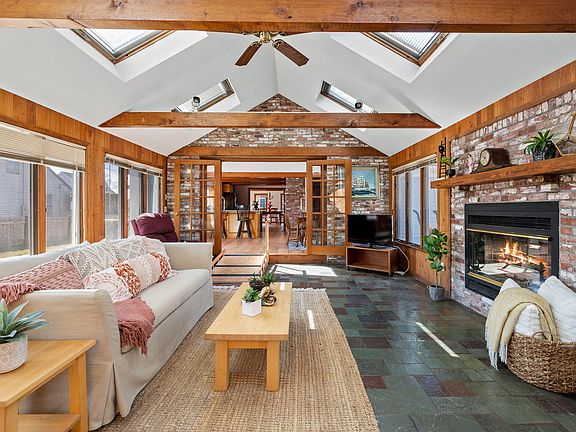 346 Walker is a home to host the backyard bbq's, race to the beach & back again for snacks, enjoy the Falmouth fireworks, cheer on the road racers & most of all fill your spaces with loved ones all under one roof. A home with gleaming pine floors & ceilings. When the sun shines through, the light bounces & exudes warmth all over.. The farmer's porch welcomes you, the spacious living room calls for gatherings, the dining room provides space for many to enjoy dinner at one table. A kitchen that is central to all first floor spaces and has a focal point custom brick wall & built in range with a wall oven/microwave, a breakfast bar & cozy corner for a kitchen table leading out to an expansive & private deck, gardens, backyard & outdoor shower. French doors from the kitchen area lead to a sunken family room with skylights, gas fireplace, surrounded with windows. A quiet corner is nestled in with a small library & full bathroom. The second floor includes two spacious bedrooms, walk-in hallway closet, full bathroom & primary ensuite. In addition is a one bedroom apartment above the 2 car garage with kitchenette, living room, balcony sharing peak views. A home to love on! Seller is currently replacing the expansive composite deck and will complete prior to closing. Newer generac generator run by gas. Seller to secure suitable in order to close.