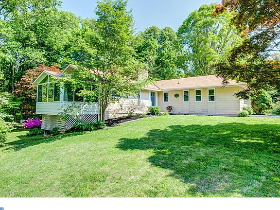 Experience tranquility in this fantastic ranch home sitting on a beautiful setting in the quiet community of Church Hill, all within the Cooke Elementary feeder pattern. Come home and get away from it all while sitting on the brand new deck (2018) offering panoramic views of nature and the stream on the adjacent parcel included in the sale. The adjacent wooded lot also provides amazing views from the sunroom and access to Sawin Lane for peaceful walks on the natural trails or to Sanford's soccer field & field hockey turf. Once inside, you will appreciate the flow of this home with high volume ceilings in the dining & family room with hardwood floors throughout the main level. The family room is accentuated with built-ins, wood beams, a brick wood burning fireplace and french doors the deck. The kitchen has been improved with granite countertops, backsplash and trendy under mount lighting. Start your day right and enjoy the beauty in nature by dining or relaxing in the sunroom. The main level is host to two bedrooms and two updated full baths. The walk out lower level consists of additional living space with two bedrooms featuring brand new carpet, a renovated full bath and kitchenette which could be used as an in-law suite. The lower level wood stove with brick hearth is a wonderful supplemental heat source for Winter's cold months. There is also additional space that can be used as another sitting area, music room or playroom as well as plenty of storage. A two car garage and large driveway to handle many cars completes this unique home. Come see this home that is truly in harmony with nature and just around the corner from Sanford School and everything Hockessin offers.