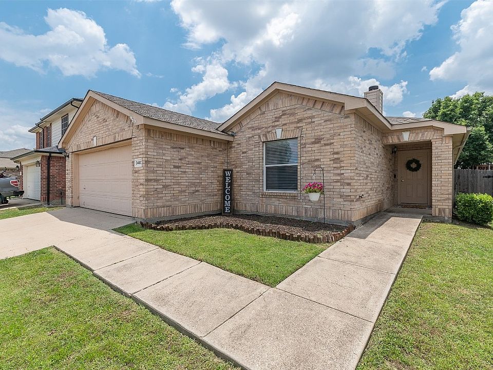One block away from Northwest ISD Elementary School, close to Tidwell middle school, and in a partial cul-de-sac. Open floor plan has a spacious living area with a wood burning fireplace. Living family room flows gently to the kitchen and eating area. Large primary suite has plenty of room for a sitting area and spacious walk in closet. Retreat to your primary suite after a long day at work. The other 3 bedrooms are away from the primary suite. Relax on your private patio with your morning brew or your ice tea in the afternoon evening. Easy commute to I35 and highway 114. This one won't last long.