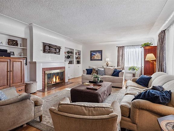 For homebuyers, the residence features original oak hardwood floors, generous rooms, and large windows that bring in natural light. The living room, with a gas fireplace, flows into the dining area with French doors to the back patio. Two main-floor bedrooms and a full bath provide comfortable living, while the basement includes a large family room, two additional bedrooms with egress and a modernized bath with a steam shower.