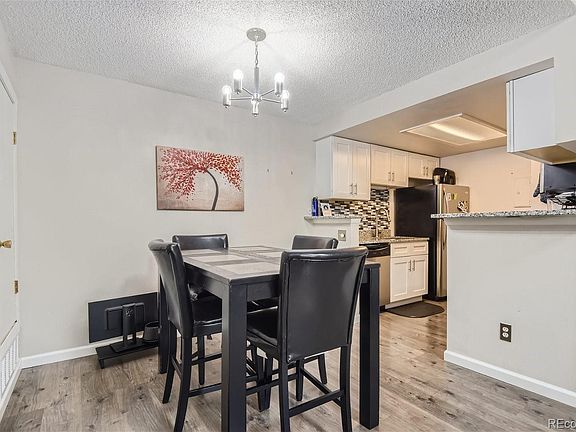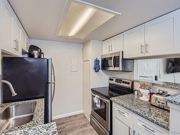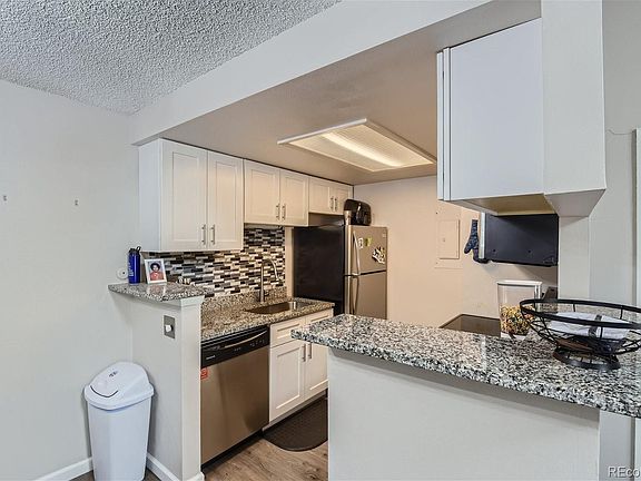 Beautiful top-floor, corner unit in the Sunflower Condos community! The open floor plan is highlighted by the natural sunlight that pours in through the private balcony and skylight. Vaulted ceilings, updated flooring, and a wood-burning fireplace make for the perfect living space. Kitchen boasts Stainless steel appliances and granite countertops. Generously sized bedroom with additional balcony access. In-unit washer and dryer included, 1 Reserved Parking Space. Conveniently located near lightrail and public transit, easy access to DTC, I-25, and I-225. Welcome home! This home Qualifies for a CRA Loan, Mortgage Insurance is paid by the lender! Reduced rate 30-year Fixed! Reach out to find out more info!