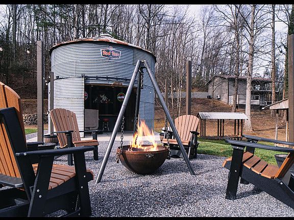 This property has something truly unique, a SILO with an EXTRA 360 sq feet of entertainment space, which houses an ECOSPA 2 person hot tub, propane grill, bar with sink, 65 inch TV, bluetooth speakers and very patriotic refrigerator, leading out to a firepit with ''cowboy cauldron'' and seating for 4. A truly remarkable entertainment space!