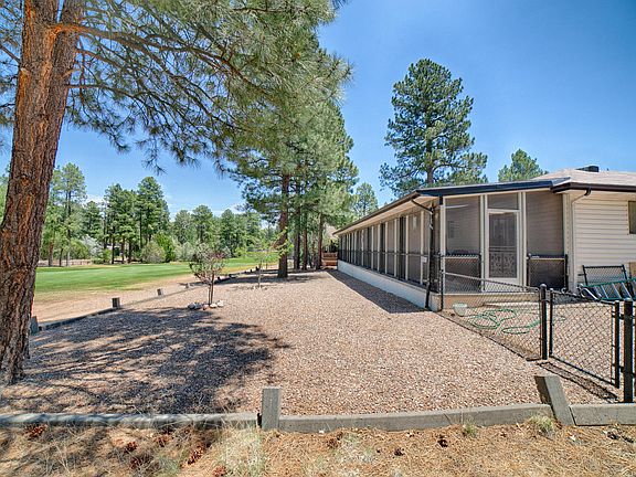 This home is available in the highly desirable area on Cooley St in Show Low CC Estates. No HOA! Enjoy the beautiful mountain weather sitting out on your large patio space looking out to the Bison Golf Course. The home has plenty of space - three large bedrooms, 2.5 baths, a den, dining area, large living area, spacious kitchen, and screened in porch expanding the length of the house. There is a dog run off the side of the porch and a nice sized yard area as well. The two car garage has lots of of storage. There is also a nice sized porch area in the front of the house. The owners recently put in new flooring, fresh paint, and new window coverings.
