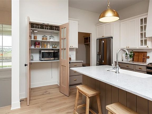 Inside, you’ll feel an immediate sense of light and openness. Ten-foot ceilings, white oak floors, and custom built-ins create a bright, welcoming atmosphere. The kitchen is a true centerpiece w/ quartz countertops, gas range, wood hood vent, pantry w/ solid shelving, and an inviting island for gathering.The primary suite feels like a retreat, featuring a tiled shower, double vanity, and direct laundry access. Two additional bedrooms share a Jack & Jill bath, and the mudroom w/ lockers keeps life organized. Step out to the covered composite deck overlooking fenced, yard w/ irrigation in place.The finished walkout lower level offers space to relax and entertain w/ a large family room, wet bar w/ island seating and full-size fridge, plus two bedrooms and a full bath. Set on a .41-acre lot w/ room to expand the fence, this home includes thoughtful extras—custom Hunter Douglas motorized shades, water softener, whole-home humidifier, EV charger, washer, dryer, and more. Better than new and ideally located near parks, trails, Waukee schools, and local dining, this home blends comfort, quality, and style in every detail.