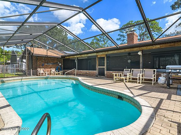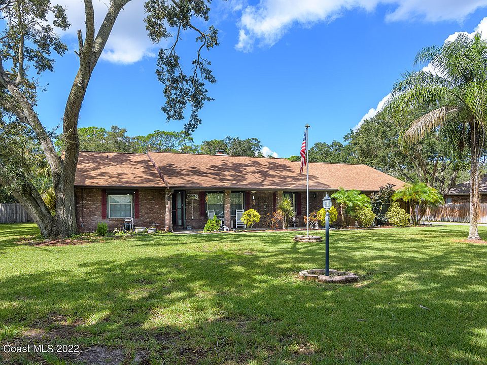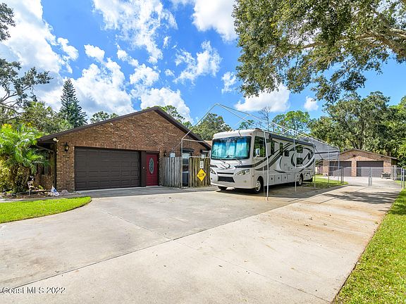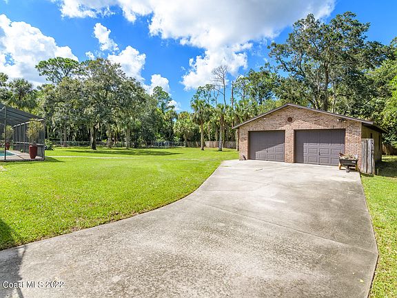 Beautiful country living, city close! This home sweeps over 2279 SF and is charmingly situated on over 1 acre. Celebrate friends & family in the great room accented w/ a large brick fireplace or host get-togethers by the pool under the large screened porch & tons of outdoor green space! Got kids or in-laws? The split plan is perfect for optimum privacy! The ensuite is perfect for your in-laws & 2 other bedrooms share the 3rd bath. The jumbo 24X40 detached workshop is ideal for hobbyists, carpenters, and car or boat enthusiasts. More storage over the garage! Outstanding features include a solar water heater, electric shutters, salt system pool, 40' RV pad w/ 30 amp power & generator breaker box. Roof 2017! I-95, L3 Harris, top schools, beaches & conveniences close by!