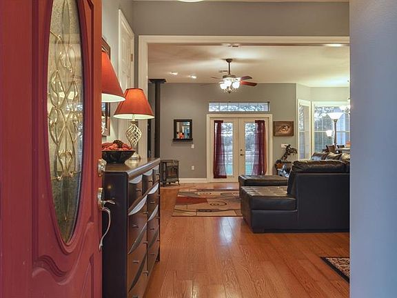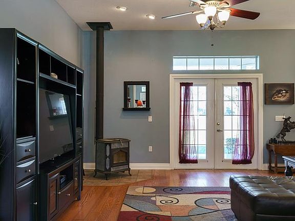ON BLANTON LAKE - This awesome custom built home on 13+ acres borders Blanton lake on 2 sides. The interior has that lake house feel with hardwood floors, open floor plan, new kitchen appliances and a split bedroom plan. A 39x10 covered back porch with brick pavers overlooking the lake and a covered 34x10 front porch that boasts of that lake house style. There is a 40x 30 metal shop and a pole barn with a tack room for the horses. SO MUCH TO OFFER.
