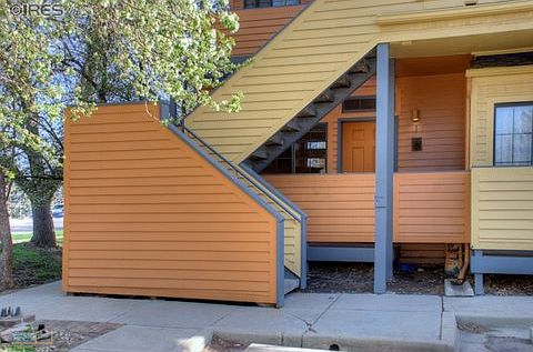 Contemporary North Boulder main floor Condo, close to everything! Walk to Tangerine, Arugula, Abo's, Safeway and on the bus line and bike path. Master bed has a small private patio. Great starter condo or turnkey rental. Covered parking, cozy wood stove, french doors to second bedroom or office. Washer/dryer hook-ups and storage in crawlspace. The building will have fresh paint which is being prepped now, please ignore the work trucks and dumpster, painting will be completed soon. Come see!