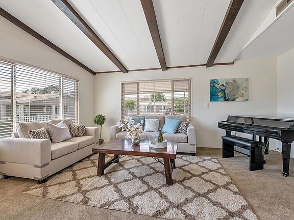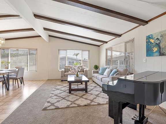 Location! Location! Location is the word that best describes this land owned 2 bedroom, 2 bath, with den/optional 3rd bedroom and 1,680 Sq. Ft. of living space. A brand new A/C, heater, water heater were just installed and the home has dual-pane windows throughout. It is move-in ready, in a great location and just steps away from the main club house, pool & fitness center. Rancho Carlsbad is a 55+ active, resident owned, resort living senior community where you are minutes away from the beach, shopping and fine dining. Enjoy the community, all the wonderful amenities and more than 30 different clubs to choose from in this guard-gated community.