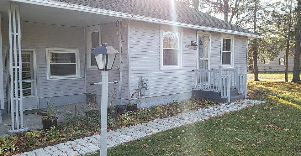 Two bedroom 1 bath ranch in Fruitport schools with full basement and a one stall garage. Large yard, new vinyl siding with refinished wood floors and new paiint. Don't wait this house is priced right.
