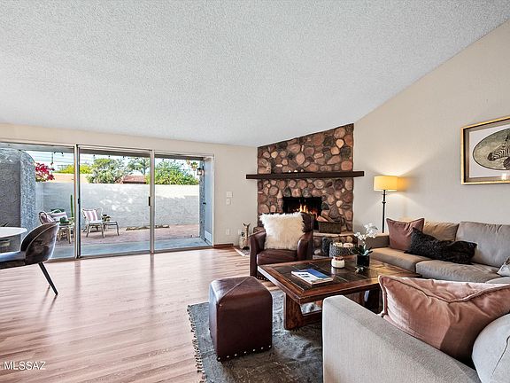 Move in ready 2 bedroom 2 bath in Richland Heights Townhomes. No carpets! Great location! Close to UofA, Banner, St. Phillip's Plaza, La Encantada Shopping Mall. Living room features vaulted ceilings, fireplace, and sliding doors that lead to the backyard. Updated kitchen, cabinets and appliances. Brand new HVAC and new Nest Thermostat, rolling shutters, fresh exterior paint. Community pool and spa. Covered parking. HOA pays water.