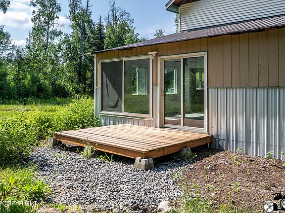 Price reduced to reflect one acre of land instead of two. The extra two lots in the back are available for an additional $50,000. Peace and tranquility abound in this comfortably remodeled home. The large primary bedroom is up and away with two walk in closets and two balconies to view both the front and back yards. Plenty of options and spaces to set up a home office..Prator lake access is just down the street and many lakes in the area. Access to the other two bedrooms and bath is up their own private staircase. Oversized living room with large windows to let in all that Alaska sunshine. Located on a quiet cul-de-sac road, only 20 minutes to the heart of Wasilla. Minor finish work is still being completed such as bi-fold doors hung, caulking, painting, and door knobs. Raspberries and a lilac bush... Come see what this area has to offer!