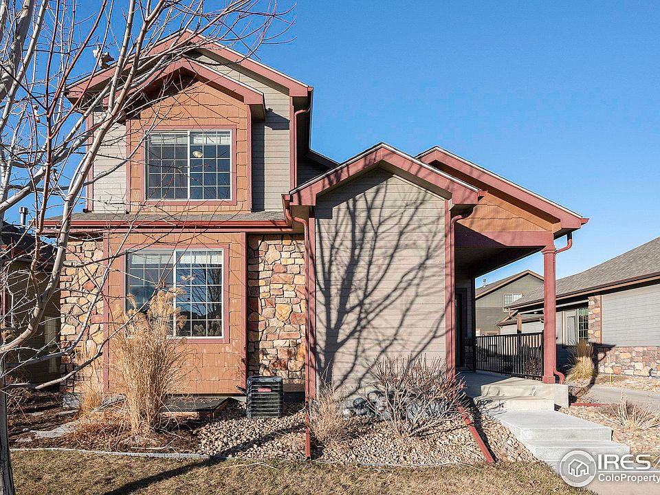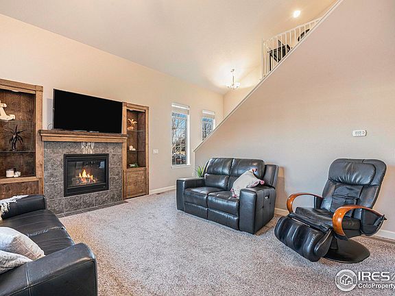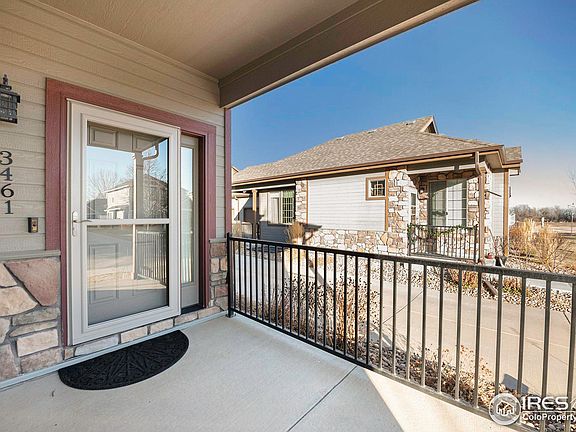 $5000 SELLER CONCESSION towards Closing Costs &/or HOA Fees! Like NEW, beautiful Townhome patio home offers main floor primary bedroom, bath, and laundry. 42" cabinets in kitchen, SS appliances, tile back splash, Granite counters w/ raised breakfast bar. Wood laminate flooring in Kitchen and DR. Private patio. Vaulted ceiling and cozy gas FP in LR. Loft office/flex space. Granite counters, tile floors and tile surround in baths. Mountain views, patio, 2x6 walls, FF two-car garage, unfinished basement w/ 9 Ft. ceilings + Central AC. Excellent location with easy access to I-25, Centerra, Chilson rec center and Downtown LV pickle ball courts and bike trails nearby, pool in community. Metro district fee is included in taxes.