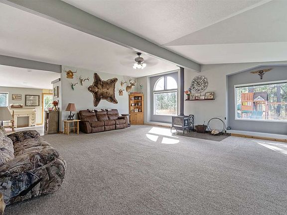 Fantastic location with 5 treed level acres, 36x48 shop w/ new concrete floor, a beautiful triple wide (2277sqft ) plus attached 2 car garage ! This home sits next to 600Acres of recreation land owned by City of Deer Park. Interior has been completely updated w/ great neutral tones, plush carpets and engineered floors in the kitchen and dinning. Kitchen is open and bright w center island and a back slider opening up to a beautiful concrete brushed patio. Huge living room w wood stove making for a wonderful warm gathering space. Newer roof, gas furnace and sprinkler system too. Just 5 mins to Deer Park on a paved road.