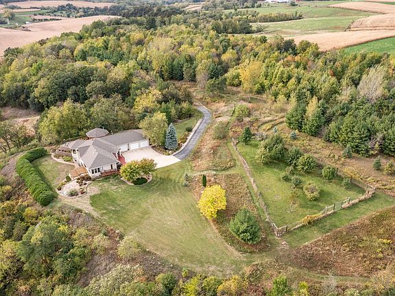 Nestled in on a wooded hillside in Lanesboro MN sits a perfect blend of luxury living surrounded by 95+ breathtaking acres of outdoors w/over 5 miles of groomed trails through Maple groves, open meadows, many native hardwoods, & Pine trees. On the private hilltop sits a quality constructed & designed walkout ranch home w/over 4000 sq ft of spectacular & energy efficient living space overlooking year-round panoramic views of the countryside & tranquil outdoor space. The land has been meticulously cared for that one can enjoy over 2000 trees planted to mix in w/ native trees, 2 seeps creating a natural creek, nature walks, star gazing, picnic areas, maple tapping, an orchard w/mixed fruit trees, & abundance of wildlife. Tucked below sits a cottage that is currently rented, an outbuilding w/woodworking shop, chicken coop, some raised gardens & approximately 15 acres of crop land for added income. This place sings to you with so many possibilities, take the moment to see it all.