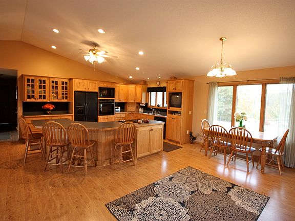 Ample room for everyone! This spacious forty two hundred square foot custom built rambler has many features that you and your family will appreciate, including: the large open living room you will notice right away, with high vaulted ceilings, and hardwood floors throughout, the convenient main floor laundry, lots of Hickory cabinets and a huge walk in pantry for extra storage, the dining area, many windows and a patio door leading out to a huge deck, three bathrooms and five bedrooms to include a full master suite with a separate tub and shower, you will love the full finished walkout lower level with the kitchenette and family room for entertaining guests, the two stall attached garage, maintenance free siding all on 4 plus acres with a great country setting.