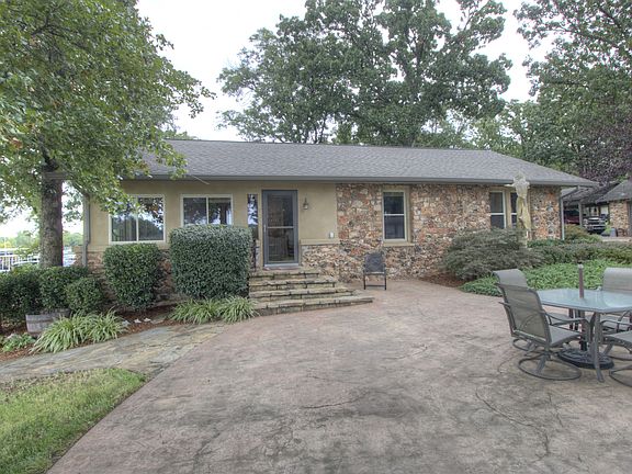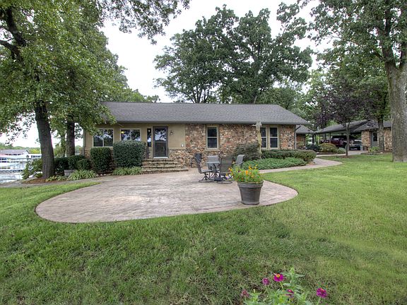 Ketchum Cove waterfront property! Gentle slope, 189 ft. of waterfront, 1.04 acres of land. Darling 2 bed/ 2 bth home w/ detached garage/carport and large storage building. Open floor plan w/ large windows & fabulous views f/ living area. Kitchen features knotty pine cabinets w/ granite counters & stainless appliances. Den/2nd living area complete w/ wood pellet stove. Garage converted to sleeping area/ office space w/ window unit. Beautiful well-kept grounds complete w/ 2 large cement patios, built in smoker, well-manicured yard w/ plenty of space to roam. Boat dock has 2 boat slips, all with dock rollers. One slip is covered and one is enclosed with an insulated fishing area. Plenty of room to hang out on swim deck as well. Located near town amenities, and less than one hour from Tulsa! Garage modified to updated Office with Heat and Air. Patio has been arched Cover installed to Match 2022