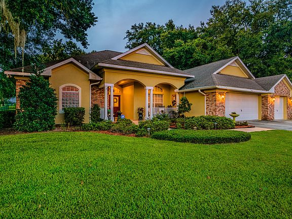 Exquisite Alexander custom built home located in Mountainview Estates. This 4 bedroom / 3 Bathroom / 3 car garage meticulously maintained home shows like a model. Expanded front porch to enjoy captivating views. Upon entry through the leaded double doors you'll be greeted by the formal living room featuring a gas log fireplace and double tray ceilings. Spacious Owner's Retreat & En-Suite with his and hers walk-in closets, double vanities, soaking tub and walk-in shower. Kitchen showcases double ovens, Silestone countertops, walk-in pantry. Open concept great room, breakfast nook and pass-thru window to the an oversized lanai makes it perfect for entertaining. Situated on just over ONE ACRE home site with a 30x24 detached GARAGE and fenced in backyard. No HOA. Easy access to I-75 and SR 50.