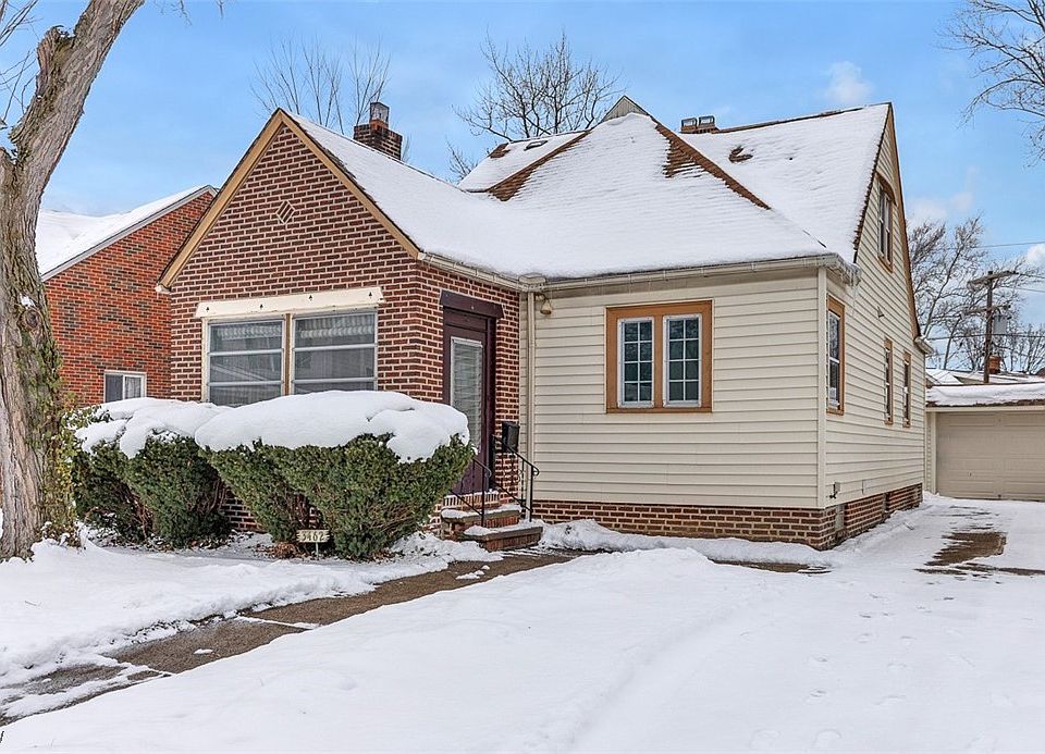 A well-maintained brick and vinyl-sided Cape Cod located in the desirable Kamm's Corner neighborhood. The home is situated near 3 private schools, Metro Park system and easy access to downtown Cleveland sports and entertainment. The home invites you to a lovely enclosed front porch for quiet evenings or fun entertainment. The interior boasts beautiful hardwood floors, wood molding and wood doors throughout as well as a wood burning fireplace. A master bedroom and full bath on the main level for convenience. The home's interior has been recently painted. The basement is also freshly painted with a full water proofing interior/exterior installation from Ohio State Waterproofing to include warranty. Electric box and meter have been updated. The 1.5 detached garage has a designated work space. Property has been prepared for immediate occupancy and the next owner's touches. We anticipate a strong demand based on location and condition.