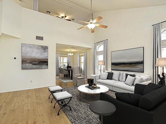 - Ceiling Fan(s), Corain Counters, Crown Molding, Double Vanity, High Ceilings, Multiple Living Areas, Primary Bedroom on Main, Recessed Lighting, Walk-In Closet(s)