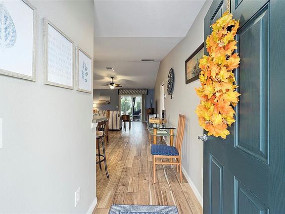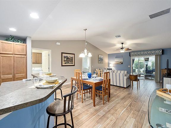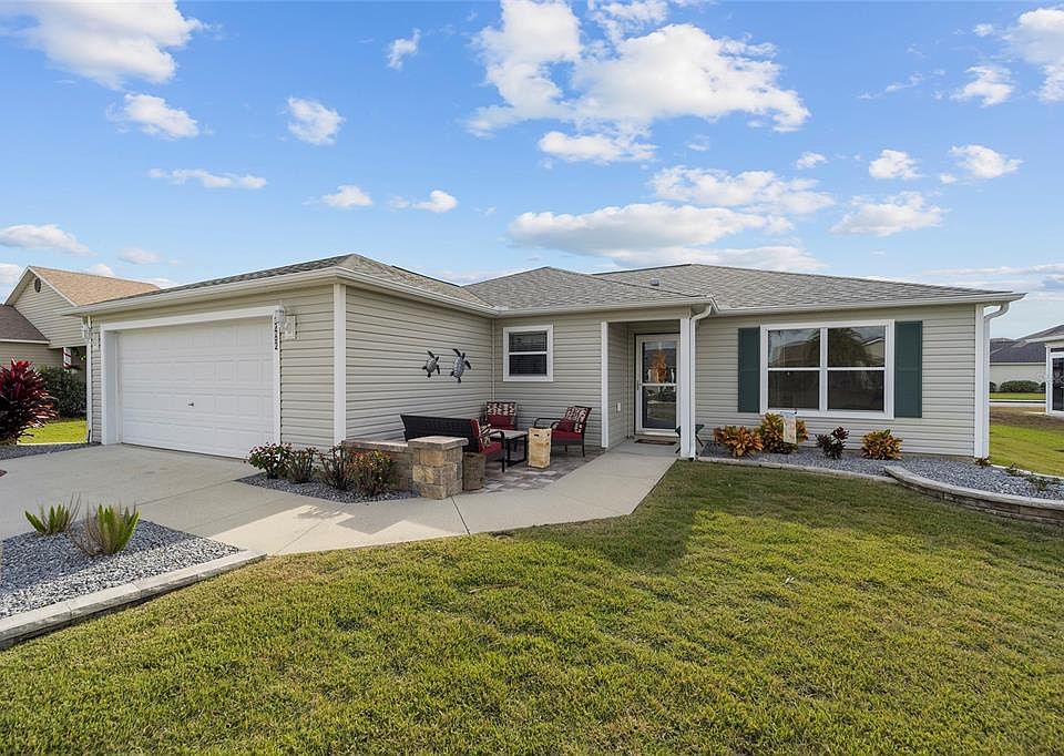 BOND PAID!! Beautifully built and meticulously maintained, Sandpiper model home, located in the highly sought-after Village of Fernandina. It starts with curb appeal as you drive up and admire this beautiful home in its beautiful neighborhood. Notice the mature landscaping, gorgeous palm tree and inviting front patio area. As you transition inside you will be equally impressed with the open floor plan, high ceilings and bright and airy feeling this home offers. The interior has been recently upgraded with brand new paint, laminate flooring and carpeting in the bedrooms. Please note that this home is being offered as a "turnkey" which means all furniture, household items and home dcor are included in the listing price. As you continue through the home you will find a generous master bedroom suite with private master bath and walk in closet. You will also find two additional bedrooms with an additional full bath which creates a great guest suite area. The enclosed lanai offers the comfort of the glass enclosure with the feel of outdoor living. There is also a beautiful patio area which could easily be enclosed with a birdcage if you so desire. Back in the house it's time to visit the kitchen area complete with hardwood cabinets, stainless steel appliances and a versatile pony bar which lends itself to bar stool seating, serving, or a great work surface. Let's not forget to check out the garage which is accessed through the indoor laundry room. You will find plenty of room for parking in this oversized two car garage complete with storage cabinets, work bench and extra refrigerator which also are included in the list price and yes it does include the tools. This beautiful home is perfectly located between both Sumter Landing and Brownwood Town Squares with all of their great shopping, dining and entertainment. It also has perfect access to lots of golf courses, pools and rec centers. It just does not get any better. Take a look at the pictures, watch the video and then call to schedule a visit to your new home in The Villages.