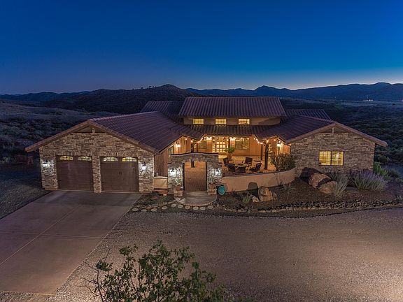 Fantastic CUSTOM Built/One Owner, with Privacy Unlimited on nearly 10 acres BACKING BLM & STATE LAND, a Healthy 8GPM Well, & the most INCREDIBLE VIEWS of the Bradshaw Mountains from every room !!!! Having a total of 4393 Quality Square Feet(2100 sq ft on Main/2300 sq ft on Lower Level), with a GREAT ROOM Concept.. this Beauty has a total of 4Bedrooms/4Bathrooms/2CarGarage plus Game Room with Wet Bar & Fridge, with the Master on the Main Floor.... 3/4'' Hand Scraped Oak Flooring in all Traffic areas. Features include 14' Ceilings, Ceiling Fans, Security System, Intercom, Surround Sound, Gas/Wood Fireplace with Stacked Stone Chimney Face & Beautiful Mantel. CONTINUE