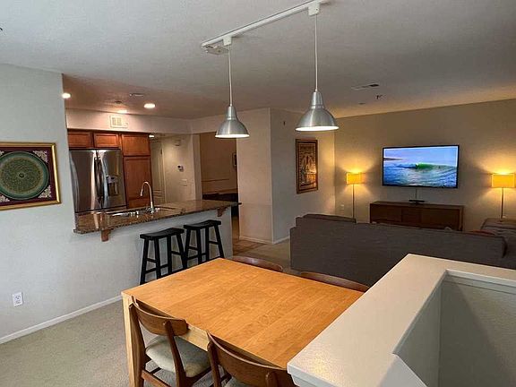 ** Available only from August 15,2024 - June 1, 2025 **. This home is available for 30+ days at a time. Longer term tenant preferred. This home is a great choice for a long vacation, transition while you are remodeling your home, or if you just need a place to stay in between moving to a new home! This top-floor condo has two large bedrooms, two bathrooms, a living-dining area and an extra den that can be used as an office or play area for kids. The bedrooms have brand new furniture, mattresses, and linens. There's also a spacious two-car garage with plenty of room for arts, crafts and hobbies as well as storage. Kept meticulous, this home is fully furnished and appointed with all you need! Relax on the private balcony and watch the nearby SeaWorld fireworks. Or take a dip in the pool or unwind in the Jacuzzi. Watch the kids enjoying the mini playground area. Grill some burgers and brats on the barbie. West of Highway 5 and South of Highway 8, in the Point Loma/Ocean Beach area, this home has cool ocean breezes and a protective marine layer that keeps this part of San Diego much cooler than further inland. Utilities not included. Available from August 15,2024 - June 1, 2025. 6 month lease negotiable