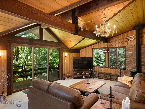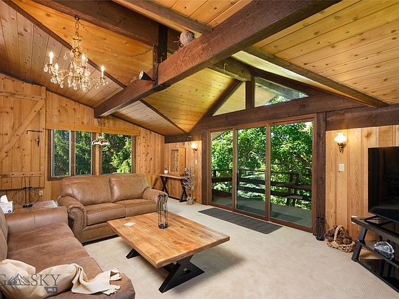 Like a vintage record, or a classic car, this home will be appreciated by the buyer that possesses taste, sophistication, and style. This is a rare find. The materials used radiate character - Moss rock fireplace harvested from the Gallatin Canyon, Vintage Monarch wood burning range in mint condition, rough cut fir post and beam construction, western style doors with authentic heavy gauge iron gate hinges...the list goes on and on (see feature list). Built over the course of 7 years by one man, this home is impeccable with fine carpentry skills found throughout. Cathedral ceilings found on the main level, 3 porches on the north, west and south. And...a separate private entrance on the lower level which features a kitchenette, 2 bedrooms, a living room, and a bathroom. Local architect Dave Wessel designed the home to fit into the gently sloping hillside and blend into the landscape. With over 2 acres located just off Sourdough Road, the location and solitude is unbeatable. More than 100 mature pine, fir, spruce, birch and aspen. Close to all your favorite hiking trails with easy access to downtown, MSU, and Bozeman Deaconess Hospital. If you are looking for a cookie cutter home that looks like your neighbors, this isn't for you. If you think Rumors by Fleetwood Mac is an excellent album...this might be what you're looking for.