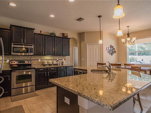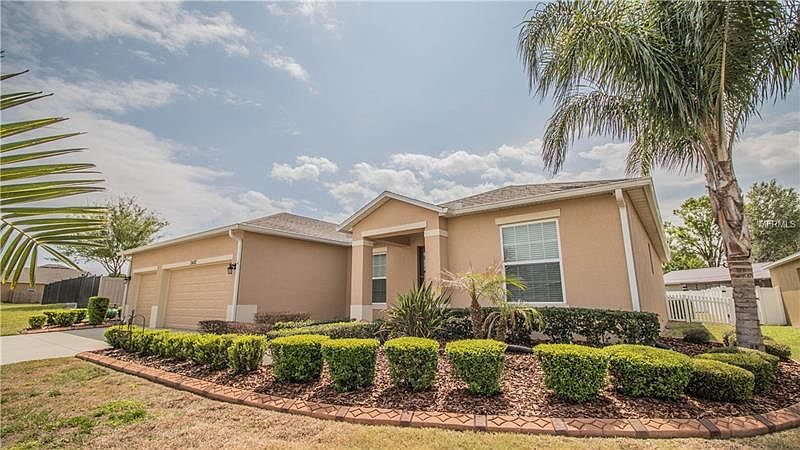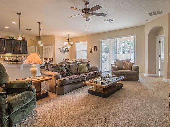 Welcome Home to this well maintained, 2013 built, 4 Bedroom 2 Bath home! This DR Horton built home is the Manchester floor plan. Some of the exciting features include an 8' entrance door that welcomes you into the inviting Foyer, a spacious Den/Office has plenty of room and could be utilized as a 5th bedroom, the large Great Room, split bedroom plan, covered patio with extended concrete deck which makes a perfect place for entertaining, grilling out or just relaxing, 3 car garage, interior utility room with bonus storage closet and much more! The Kitchen features granite counters and loads of cabinetry, all stainless-steel appliances, a closet pantry, an island which could also serve as a breakfast bar and a dinette also sits off from the kitchen. The enormous Master Bedroom includes his & her walk-in closets and sliding door. The Master Bath features dual sinks, stone counters, a large garden tub and separate tiled shower stall. The additional 3 Bedrooms sit on the opposite side of the home from the Master Bedroom, with an additional Bathroom which features granite counters, a door leading to the patio, dual sinks and a shower with tub. The exterior features include the patio area, PVC fenced backyard, irrigation system, gutters on the roof, palm & fruit trees, wonderful landscaping and decorative concrete curbing around the flower beds/ bushes & trees. The flooring in the home is carpet and ceramic tile throughout. This home is Move-In Ready and easy to show, so make your appointment today!