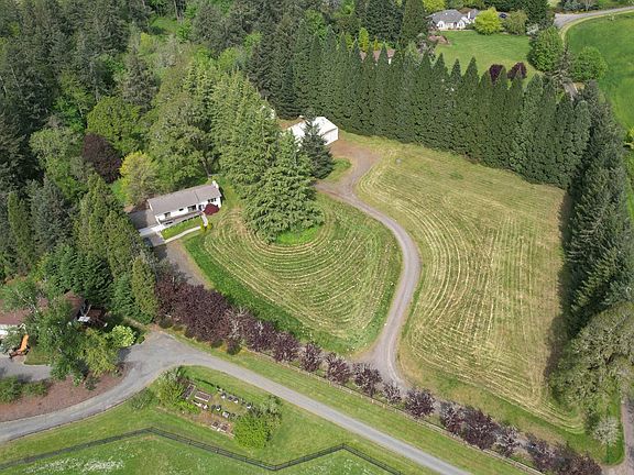 Unveil the potential of this six-acre Ladd Hill gem, a setting ripe for a dream transformation. Picture your custom-built home here, where dawn's light bathes Mt. Hood in a golden glow. The existing 1978 split-level is almost 3000 square feet, offering four bedrooms and three baths, for an opportunity to update on a budget. Alternately replace the existing residence with a modern masterpiece tailored to your desires, while maximizing the stunning views of Mt. Hood and the natural beauty of the Pacific Northwest.Two extensive workshops stand on the property: a vast 40x60 space and a smaller 30x36 companion, both with concrete floors, insulated walls, and robust power, ensuring versatility for hobbies or business ventures. Large shop has five 12x14 doors for pull-through RV storage, propane heaters, and mounts for a 2-post lift.The six-acre lot enveloping this home and its impressive outbuildings is lush with the untamed spirit of the Pacific Northwest, granting you the seclusion and space to cultivate a personal oasis. Whether you fancy gardens, vineyards, or simply the expanse of nature's playground, this land is ready to accommodate your dreams.