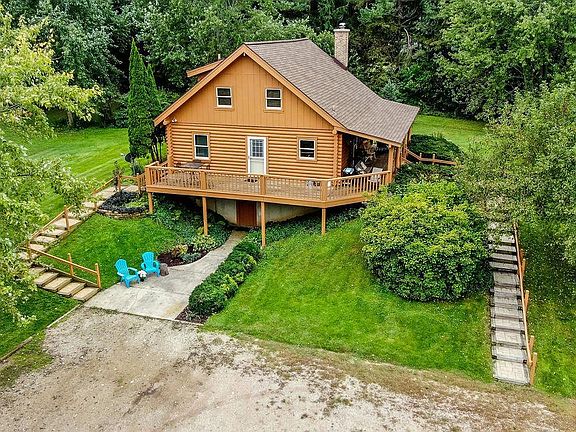 Looking for a Cabin in the woods? Look No Further!! This 3 Bedroom /2 Bath Log Home has only had one owner and is nestled on almost 5 acres. Meticulously maintained with pride of ownership shows throughout the home. Vaulted ceilings and open concept floorplan. Enjoy the cold winter nights cozied up to the woodburning fireplace. Wrap around deck to watch all the wildlife. Basement is partially finished with Family Room. Detached Pole Barn/Garage for all your toys. Close to Wilmot Ski Resort and all the area lakes to enjoy all four seasons of Wisconsin.