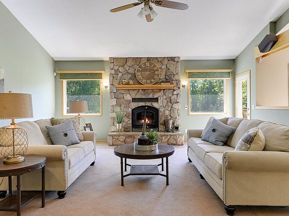 Your dream home on 20 pristine acres awaits!! This Stunning rambler boasts vaulted ceilings, geothermal heating / cooling and a gorgeous stone fireplace. The beautiful and spacious kitchen is perfect for entertaining. Master bedroom boasts his and hers large walk in closets, while master bathroom has both a shower and relaxing soaker tub. Get ready to fully enjoy your 20 acres by storing all your toys in the awesome pole barn. Wildlife and hunting out your back door, this beautiful home is less than an hour from the cities! Book a showing while you still can!