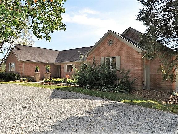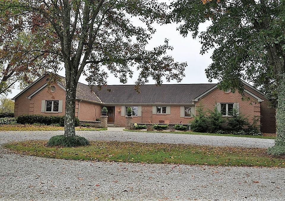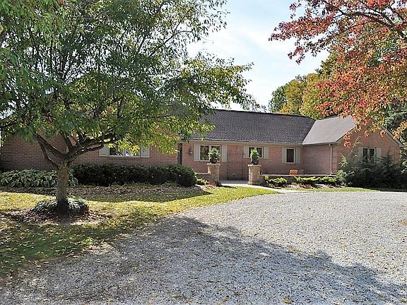 Immaculate brick ranch featuring a full walk-out basement situated on over 3 acres w/6 BRs & an in-law suite! Entering the home you'll find the enormous great room w/hardwood floor, a gourmet kitchen w/gas range, 2 sinks, granite counters, solid wood cabinetry, & dining area. Home office is roomy enough for 2 w/a backyard view! 1st floor owner suite w/private balcony & full bath w/skylight. Convenient 1st floor laundry. Full walk-out LL w/rec room & wet bar, family room w/built-ins & access to the stone patio & 3 more BRs w/3rd full bath. Additional building partially finished w/an in-law suite & laundry hook-up. Full RV hook-up. Poplar Creek stream out back adds to the uniqueness of this lot. No detail has been overlooked throughout this home even down to the solid Ash wood trim & doors!