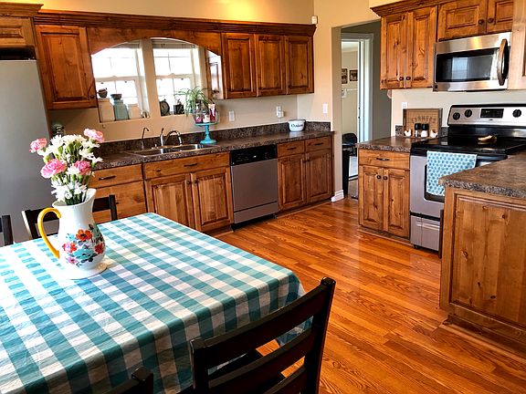 Fully remodeled country home with large 2 car garage on 2.25 acres of mature landscaping. Stucco exterior; metal roof; new windows, electrical, plumbing and heating. New interior features huge master suite & bath. Modern kitchen with knotty alder cabinets; stainless steel appliances & recessed lighting. Fantastic flowing floor plan with large open rooms. Cover ceilings, jetted tub with separate shower in master. Storage shed, work shop, and 900 sq. ft. barn. Fully landscaped with large shade trees and automatic sprinkler system, and pasture/arena area.