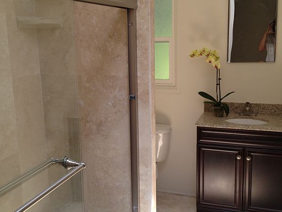 Beautiful Guest Unit in a home in upper Mandeville Canyon in Brentwood. This is for a one bedroom, one bathroom unit. The unit is not shared. It faces the lovely backyard and has direct access to it, and a private patio. Newer bathroom. There is a kitchenette in the living space with refrigerator (fridge not shown in photo). There is access to a washer/dryer outside the unit. Utilities are included in rent. One year lease.