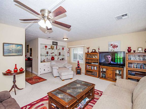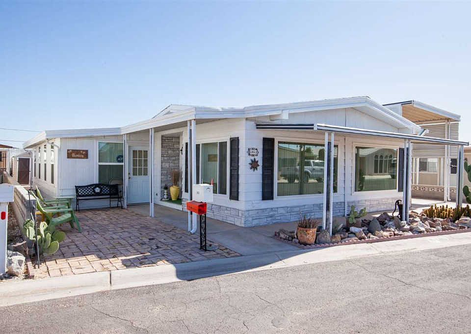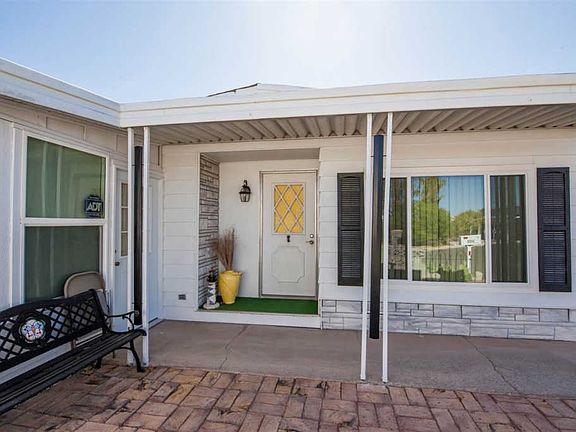 Absolutely Beautiful..well maintained double wide in Rio Colorado Est., loaded with upgrades! This 2br/2bath, open floor plan, is complete with an Az Room, spacious kitchen, and separate living and dining areas. Large utility room with folding counter and a utility sink. Large master suite with dual vanities, soaking tub and separate shower. Outdoor porch areas allow space to enjoy the AZ weather. RV awning and two storage areas. Conveniently located near shopping and medical facilities. Don't miss this one