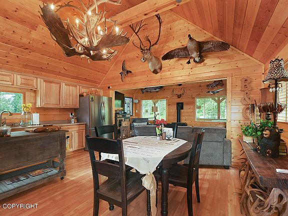 KENAI RIVER RETREAT upgraded for YEAR AROUND LIVING in gated KENAI KEYS. Remodeled cabin w/2 bedrooms, spacious bathroom, walk-in-closet, laundry room, kitchen w/solid surface counters, open living & vaulted ceilings. 2 parking areas, fire pit, HUGE deck, 2 sheds, fenced yard, covered gathering/fish cleaning area, PRIVATE BOAT LAUNCH & water front on slough. Seller has allowed other to use. =)