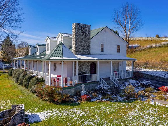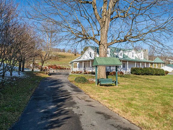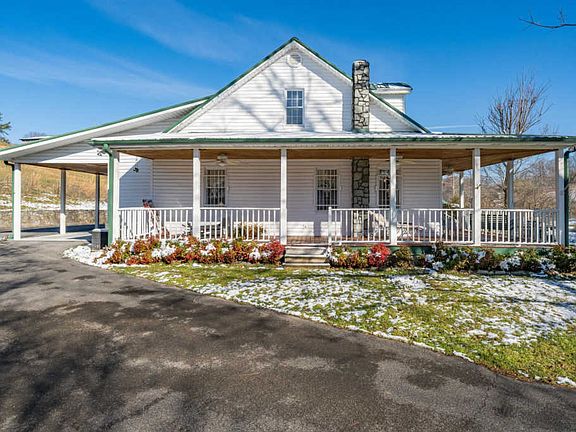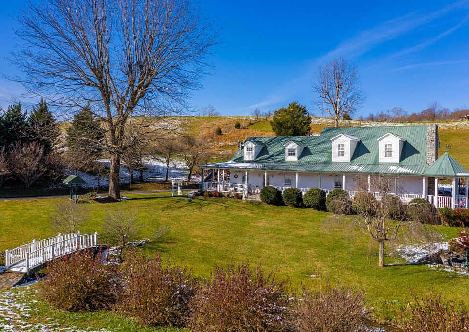 Southern charm! Welcome home to this one of a kind paradise situated on 9.27 acres, This 6 bedroom 4 bath farmhouse has everything, gated entrances, meticulously landscaped with a spring fed pond with patio area, also a creek, it features 3 outdoor fountains, a barn with water and electric, detached 3 car garage, wrap around porch, gorgeous mountain views, one of a kind carvings, with woodwork detail in every room, Other features include dining room with two built-in corner cabinets, living room with stone area designed for a wood stove, large den with stone gas log fireplace, bar area with custom designed woodwork. The main level master boasts a gas log fireplace and a large master bath with whirlpool tub and shower. The kitchen offers a wood burning antique designed stove and lots of cabinets. Upstairs consists of 4 bedrooms and 2 baths. This home has many custom features with stained glass displays, solid wood doors, central vac, security system, large laundry room, two stairways, wood carved by an artist on some doors and stairway post. There is also a 2016 modular home included with the property, with clear title, dont miss this once in a lifetime opportunity to own this beautiful property conveniently located on cherokee road just past the city limits of johnson city, All info deemed reliable, but must be confirmed by buyers agent,
