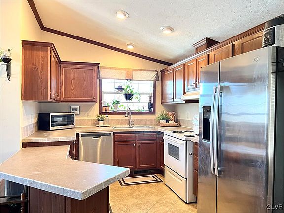 Located in the private Lil Wolf MHP, this home offers a spacious and functional layout, modern updates, and great community amenities. With vaulted ceilings and abundant natural light, the interior feels open and inviting. The kitchen features an island peninsula and plenty of cabinet space, perfect for meal prep and entertaining. The spacious master suite includes a large bathroom, while 2 additional bedrooms and a 2nd full bath provide flexibility for guests or a home office. Recent updates include a newer water heater, dishwasher, refrigerator, washer, and dryer. A dedicated laundry/utility room, ceiling fans throughout, and central A/C add to the home's comfort. Enjoy two welcoming porches for outdoor dining and relaxation, plus a sizable shed for extra storage. This 1,200 sq. ft. home is in Parkland SD and only 2 miles from LCCC. Located only minutes from Rt 309 and other major roadways, shopping, and dining. Community amenities include access to the pool, playground, basketball court, and clubhouse, making this an excellent opportunity for affordable living in a fantastic location!