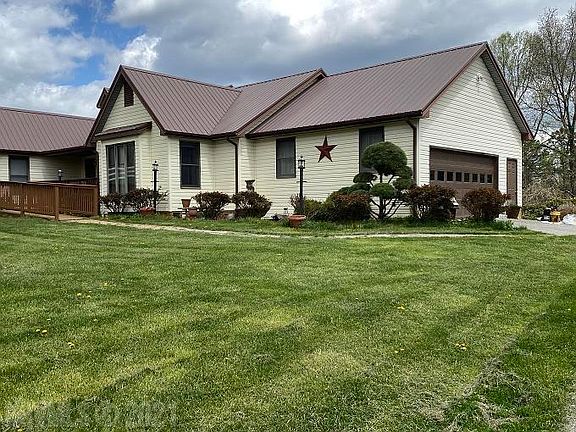 For the buyer dreaming of privacy and livestock or horses, this property is waiting for you! Main level living with wood board vaulted ceiling & brick fireplace w/wood insert in the living room, formal dining room, kitchen has a work island w/cooktop & is open to a breakfast area accented by tall windows. A split bedroom plan with the master bedroom offering a walk in closet, private bath with step in shower & jetted tub. Enjoy your morning coffee on the deck accessed from the master bedroom, or the sunroom, accented with sky lights, also leads to the back deck. Flowing hardwood floors thru LR, DR, kitchen & hall. Ceramic tile in sunroom & master bath. Carpeted stairs from the garage lead down to an in law suite or teen retreat with family/rec room, bedroom & bath w/corner shower. The a/c services the main level only. A wood furnace can be switched to electric heat. Some board fencing, flowering shrubs, a pond & serenity will make this your special place.