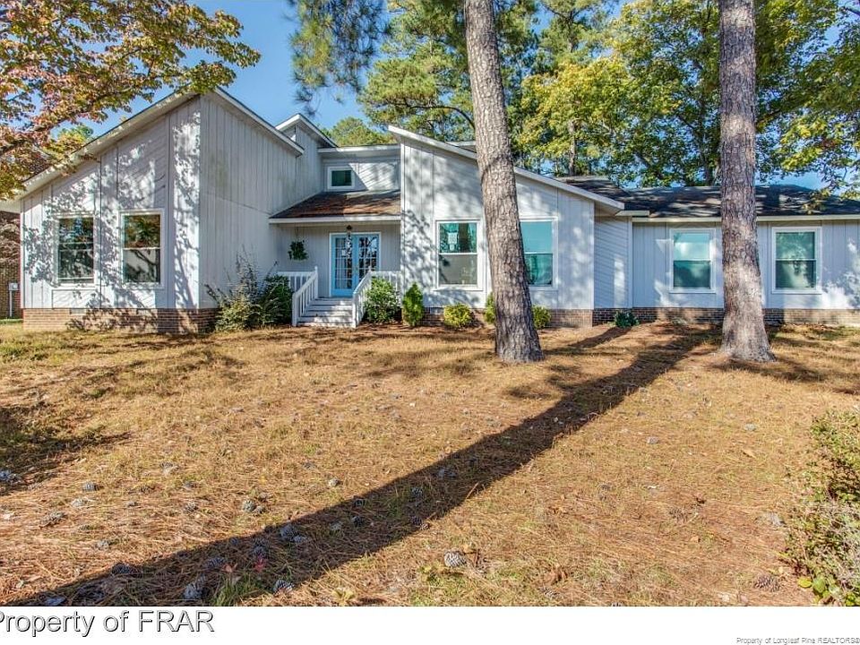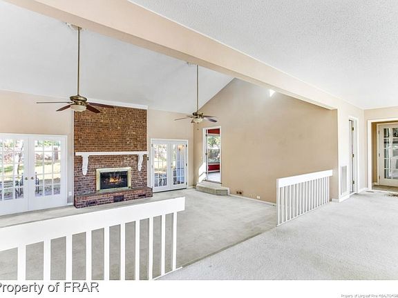 Spectacular lake view ranch style home in established neighborhood featuring 3 bedrooms & 2 1/2 bath. Sunken family room w/vaulted ceilings,sky lights and wood burning fireplace. French doors lead to the patio and large fenced in yard with mature trees. Separate dining room and eat in kitchen. Master bedroom & en-suite with dual vanities. Spacious laundry room near bedrooms. 2 car garage just off kitchen, with extra parking in driveway. Close to shopping, Ft Bragg and 295!