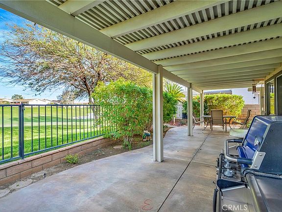 UPDATED OPEN CONCEPT HOME IN THE IVY RANCH COUNTRY CLUB GATED COMMUNITY. Beautiful front drought tolerant, manicured landscaping with trees and a gated front entry that leads to the double front entry doors. The doors open to a spacious family room with a vaulted ceiling, brand new laminate wood floors (throughout), windows with plantation shutters, and a fireplace with tiled surround. An adjacent dining room offers a ceiling fan with a light fixture and is open to the kitchen. The updated kitchen offers wood cabinetry, granite countertops, classic white appliances, a stainless steel refrigerator, two skylights, and a breakfast nook with a sliding door to the side yard. Down the hallway the master bedroom features vaulted ceilings, windows with shutters, a separate retreat, a built-in work station and bookshelves, and a sliding door to a cozy patio out back. The master bathroom offers a vanity with white cabinetry, dual sinks, a walk-in shower, and storage. There are two additional bedrooms with vaulted ceilings, an updated hall bathroom, and a laundry room with a sink, storage, and backyard access. Finally, there is an attached two car garage with a GOLF CART that will be included in the sale. The backyard offers nice concrete decking, an alumawood covered patio spanning the width of the back of the home, perimeter planters, and a view of the golf course. This property is available with all interior furnishings, refrigerator in the garage, and the BBQ in the backyard.