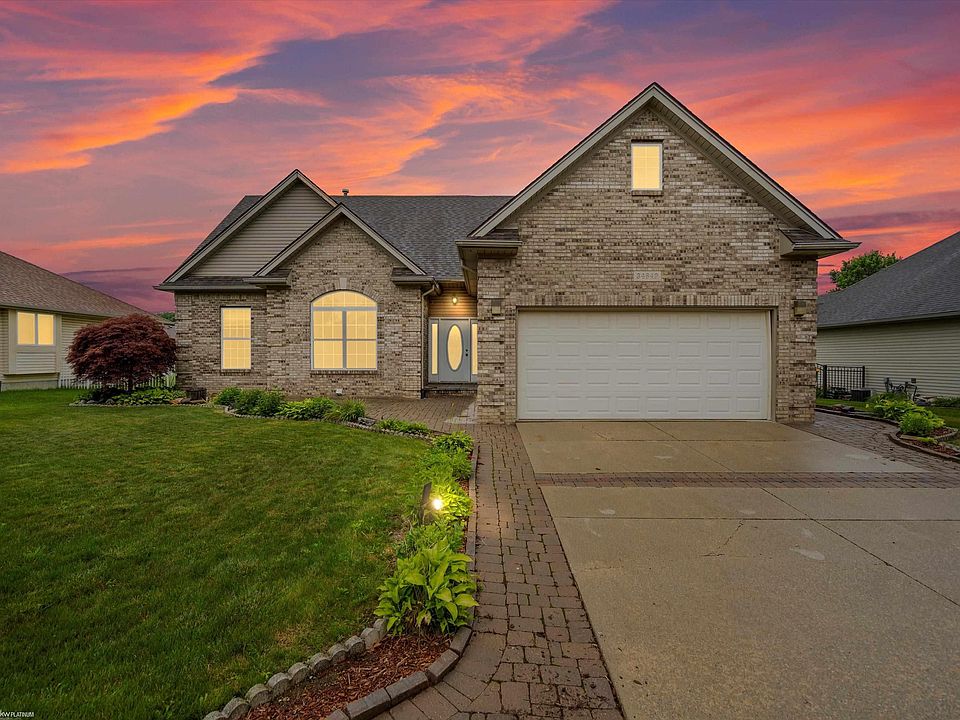 Beautiful and very well maintained brick ranch in a convenient location 2 bedroom/possible 3 bedroom/office, large kitchen has a nook with door wall to covered brick paver patio. Great room with gas fireplace and dining "L", master bedroom with private bath, and partially finished basement. Newly Painted a week ago, Brand new carpet and flooring. Come see the new updates!!!
