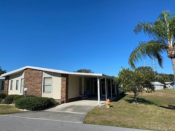 THIS PALM HARBOR HOME IS A SPLIT FLOOR PLAN WITH SO MUCH TO OFFER! BEDROOMS ARE VERY LARGE, EN SUITE FEATURES A SOAKER TUB, TWO DINING AREAS, INSIDE LAUNDRY ROOM, AND FLORIDA ROOM OVERLOOKING RETENTION AREA FOR NATURE WATCHING, AS WELL AS NO NEIGHBORS ON EAST SIDE AND BACK OF HOME. THE BUYER OF THIS HOME WILL ASSUME THE VERY LOW LOT RENT OF THE SELLER UNTIL JANUARY 1, 2023 AT THE UNBELIEVABLE RATE OF $311 PER A MONTH, WHICH IS A SAVINGS OF $2332 FOR THE REMAINDER OF YEAR 2022!!! LIVING ROOM is large and spacious with ceiling fan, windows, and open to the main dining room. DINING ROOM has TWO BUILT-IN in china cabinets with a big window, and chandelier. KITCHEN as linoleum flooring, window over sink, new dishwasher, lots of cabinets, and pantry space. Eat-in in kitchen dining area has windows, ceiling fan, and sliding doors leading out to the Florida room. MASTER BEDROOM (14 x 13 1/2) is large enough for a king size bedroom set with very large walk-in closet (4 x 10), windows, and ceiling fan. MASTER BATH has a soaker tub with tiled backsplash, windows, tiled backsplash on vanity, small linen closet, and walk in shower with safety rail. GUEST BEDROOM (12 x 12) is on the opposite side of the home for division of living space, is large enough for a king size bedroom set, with a window, ceiling fan, and walk-in closet (3 x 6) with shelving for overhead storage space. GUEST BATHROOM has a tub shower combo with a tiled backsplash over vanity, and skylight for natural light. There is a linen closet right off the guest bathroom. LAUNDRY ROOM is off the kitchen as a separate room with a window and overhead cabinets. OUTSIDE OF THE HOME has a very large Florida room/sun porch overlooking retention pond area for lots of birdwatching, a floor-to-ceiling large shed with shelving and workshop space, back patio for grilling or quiet back porch sitting, carport (30 x 11), driveway (47 x 11) and beautiful brick accents around the home. WHOLE HOME has updated plumbing and rubber roof. All furnishings will remain with the home. This Palm Harbor gem of a home was well taken care of and it is well priced. THE BUYER OF THIS HOME WILL ASSUME THE VERY LOW LOT RENT OF THE SELLER UNTIL JANUARY 1, 2023 AT THE UNBELIEVABLE RATE OF $311 PER A MONTH, WHICH IS A SAVINGS OF $2332 FOR THE REMAINDER OF YEAR 2022!!! MORE PHOTOS COMING SOON! CRYSTAL LAKE IS A 55+ LAND LEASE COMMUNITY. This is a pet-friendly ( 1 dog/1 cat under 30lbs) 55+ retirement manufactured home community. Packed full of exciting amenities such as an on-site fitness center, game room, community swimming pool, shuffle board courts, picnic areas, fishing, and hot tub.