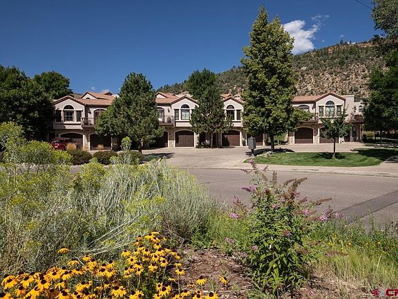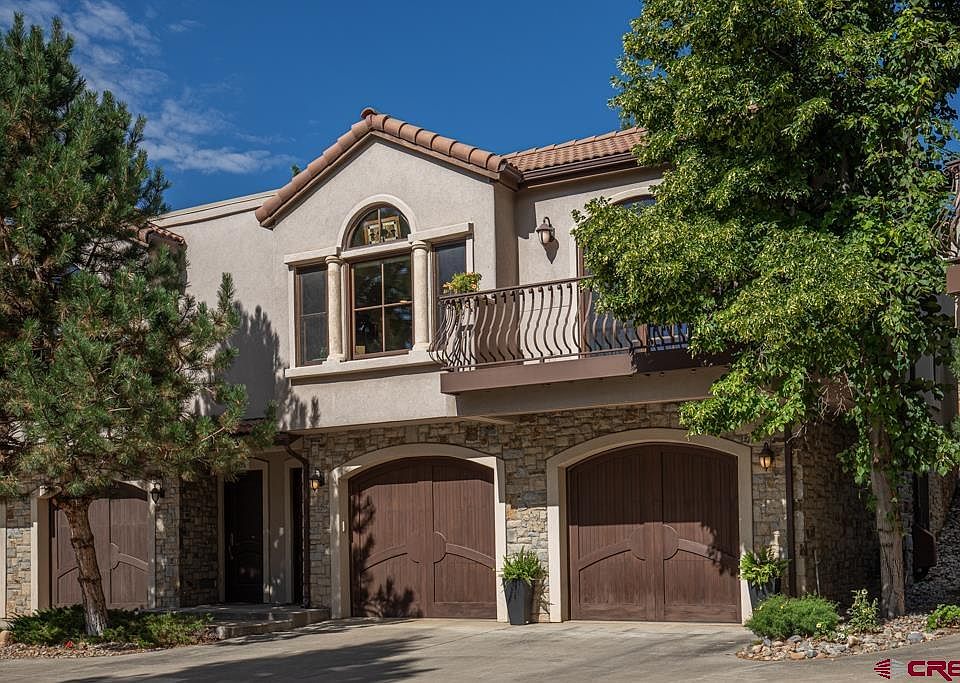 Elevated living at La Campanella means dwelling in expansive rooms, adorned with luxurious finishes, surrounded by expansive windows that invite the light and inherent beauty of riverfront living inside. Outside, find cottonwood trees and ponderosa pines at your doorstep directly across the street from the Animas River, Animas River Trail, Animas City Park, and the Historic Durango and Silverton Narrow Gauge RailRoad. Upon entering, ascend the grand staircase featuring a custom wood handrail and balusters to find yourself in an expansive and open living area that exudes elegance, freedom, comfort, and versatility. Four simple Tuscan columns frame the corners of the living room creating a graceful boundary between the open kitchen and the open dining area. Every aspect of the design and architecture showcases exceptionally high-end finishes, prioritizing your comfort. From the soaring vaulted ceilings to the meticulously hand-scraped cherry wood floors, and from the in-floor heating to the central air conditioning, every detail is carefully crafted to provide you with unparalleled luxury and modern conveniences. The kitchen is a culinary enthusiast's dream, featuring stout granite countertops, a Wolf restaurant-grade range and hood, a Sub-Zero refrigerator, an Asko Swedish dishwasher, and elegant travertine tile floors. Adjacent to the kitchen, granite bar seating provides a seamless transition of the dining space into the open-air dining room, granting you access to the private balcony with breathtaking views of the Animas River and the majestic mountains beyond. Continuing from the living area, you'll discover access to a dedicated laundry room, the primary bedroom suite, a second bedroom, and a hallway bathroom. The primary bedroom features light-enhancing glass doors that lead to the primary bathroom, which is meticulously appointed with double sinks, granite counters, travertine tile floors, and distinctive, high-quality fixtures. Every detail exudes the highest standards of quality and craftsmanship. On the first floor, to the right of the front door, enter the oversized 2-car garage. Towards the rear of the garage, you'll find a spacious storage closet and the utility room housing a new boiler system that efficiently powers the in-floor heating throughout the home. Tucked at the back of the garage discover the guest apartment with its own private entry. The guest apartment consists of four distinct spaces: a welcoming living room; a well-equipped kitchenette featuring its own Sub-Zero refrigerator, Kohler sink, cabinets, and a travertine tile countertop; a convenient ¾ bathroom complete with heated travertine floors and storage cabinets; and the home's third bedroom. This bedroom features tall ceilings, ample closet space, and a generously sized window that bathes the room with abundant natural light. Experience peace of mind and enjoy low insurance premiums thanks to the presence of fire sprinklers throughout. This beautiful townhome offers exceptionally high-quality, lock-and-leave, low-maintenance living, all set within the serene backdrop of meticulously maintained outdoor gardens along the Animas River corridor.