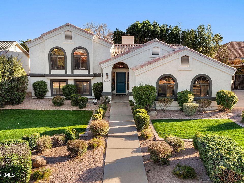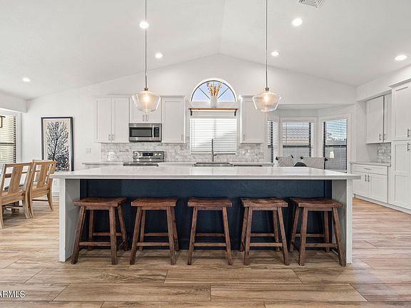 BeautifulY REMODELED tri-level 5 bedroom 3 bath home located in Thayer Park Manor. Separate living & family areas. Large open eat-in kitchen w/ stylish quartz counters, huge island with white shaker cabinets, pantry and stainless steel appliances. Dining area w/ bay window. The natural color wood tile floors make this home warm and inviting and the vaulted ceilings give it an expansi ve feel. Downstairs family room w/ built-In shelves. Spacious master suite w/ huge walk-in shower, walk-in closet w/ organizers, dbl sinks. , dbl pane windows. Large nicely landscaped back yard w/ grass plus inviting fenced pool. Extended patio w/ clay pavers. Close access to 202, US60, shopping and restaurants. Highly sought after NE Mesa Neighborhood with NO HOA.